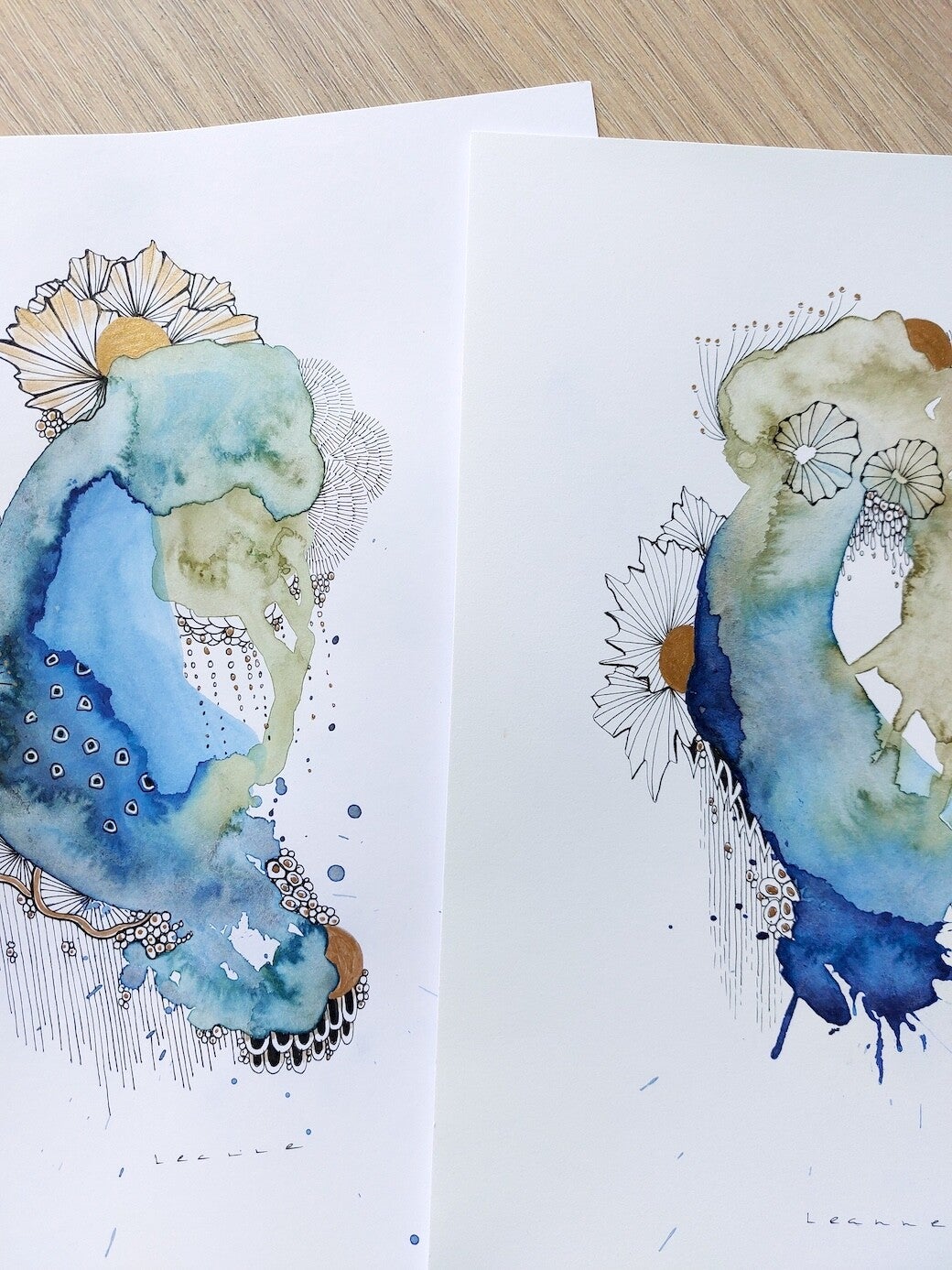 Original, one of a kind handmade drawing. With watercolor and acrylic golden ink.