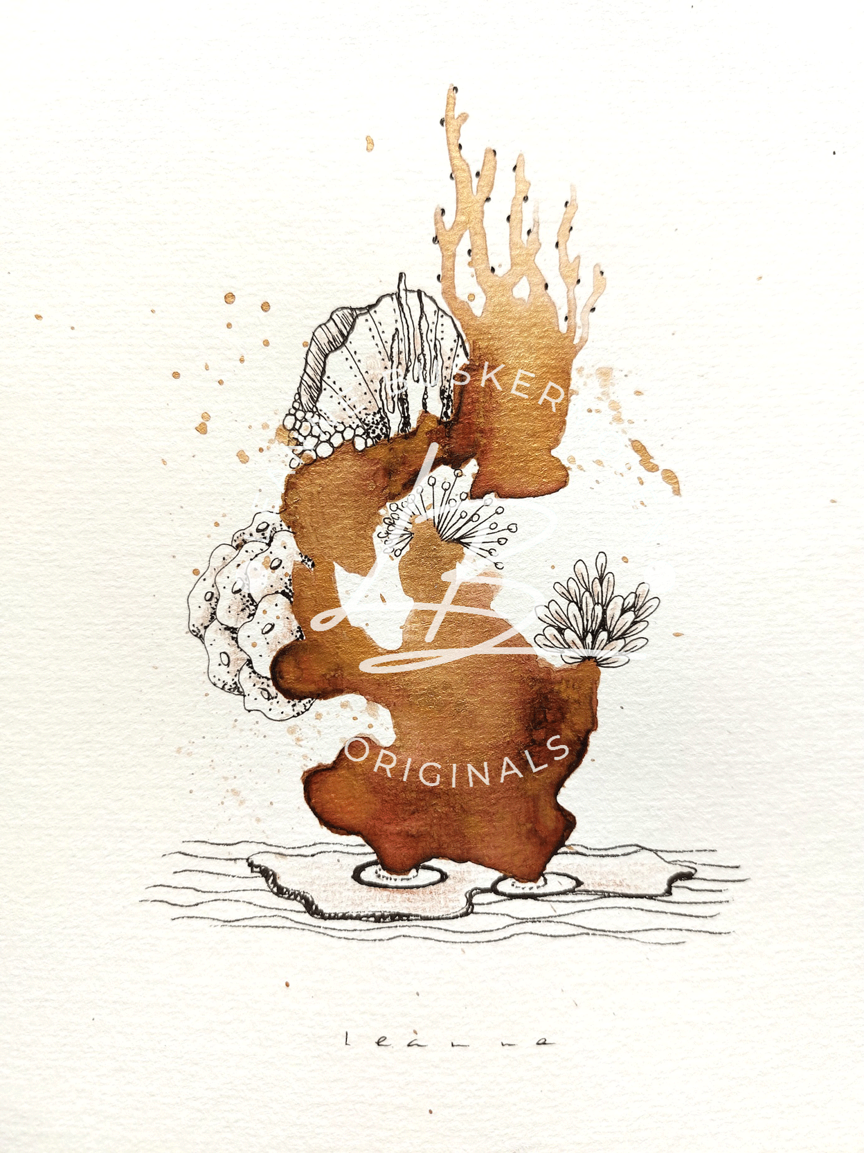 Watercolor in the tones brown and gold.
