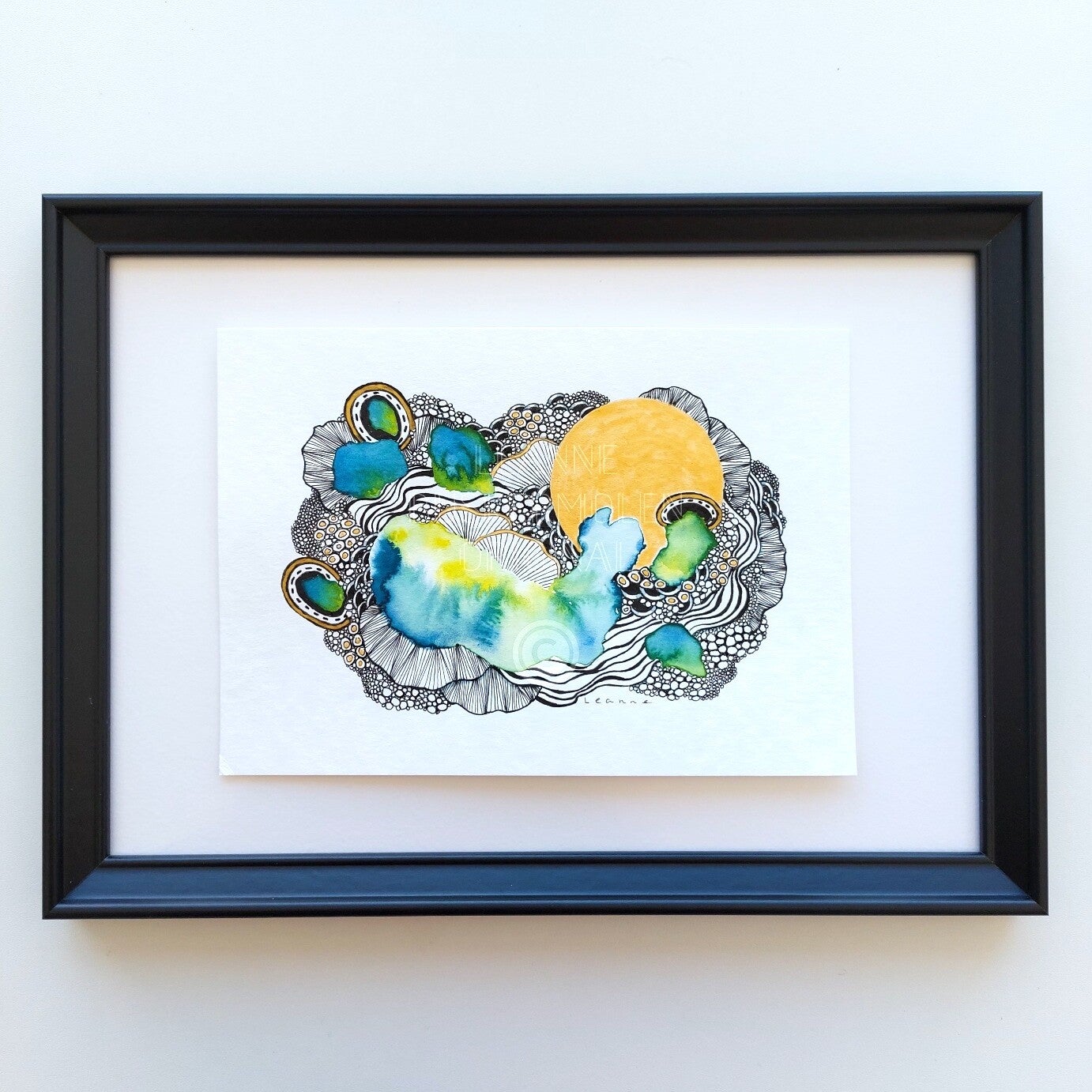 Watercolor in the tones yellow, green & blue.
