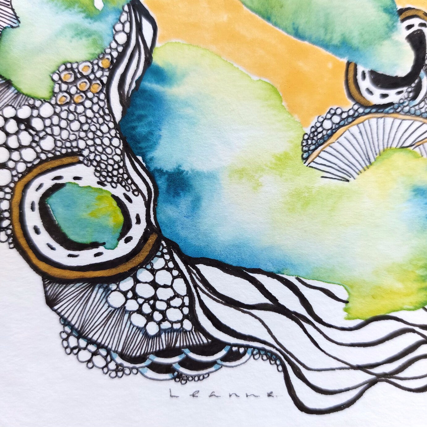 Watercolor in the tones yellow, green & blue.